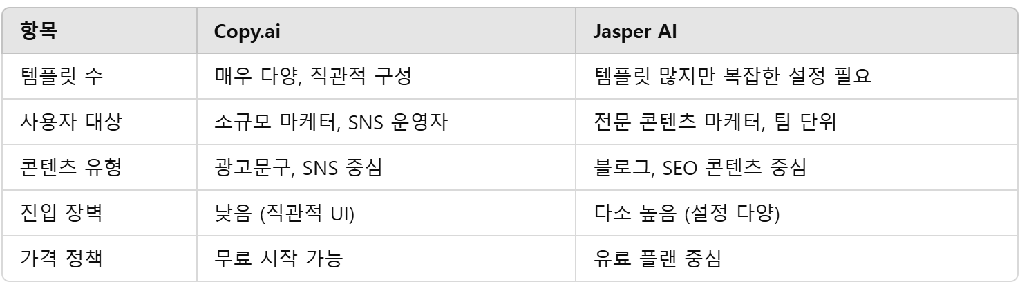 Copy.ai vs Jasper AI: 무엇이 다를까?
